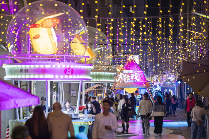 今年澳門國際光影節分別於南灣區、北區和新口岸區合共設置28組裝置,由12月6日至2026年1月11日每天傍晚六時至晚上10時亮燈,免費開放參觀,吸引居民和旅客互動打卡的同時,亦引導居民和旅客深入社區,在周邊商戶消費,帶動在地商機,進一步促進社區旅遊與夜間經濟。