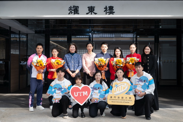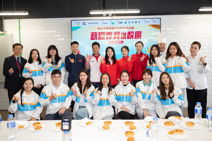 其後,多位國家金牌運動員,包括陳若琳、陳芋汐、吳敏霞、何冲及陳艾森親臨校園,與學生近距離互動。運動員們暢談訓練點滴與賽場故事,學生亦踴躍提問,現場氣氛熱烈。活動尾聲,一眾嘉賓在師生陪同下參觀了旅大氹仔校區耀東樓的教學設施,了解大學在旅遊教育方面的創新實踐。運動員更與學生們共同參與富有文化特色的體驗環節,一起動手製作澳門土生葡菜馬介休球,並品嚐新鮮出爐的葡撻。