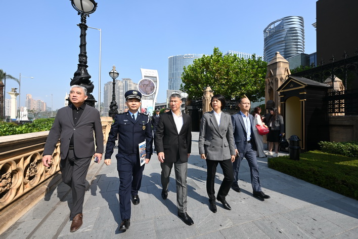 【本報消息】隨著訪澳旅客突破歷史新高,加上多項除夕大型倒數活動即將舉辦,警方預計將吸引大量市民和旅客參與慶祝。為確保各項活動安全有序進行,警察總局局長梁文昌近日率治安警察局代局長伍素萍、警察總局局長助理梁文照、局長助理魏瑞斌、治安警察局副局長梁慶康、代副局長鄭俊禧等領導主管,先後實地視察大三巴、旅遊塔、官也街、金光大道等主要活動場地及人流密集區域,檢視節日安保工作的落實情況。