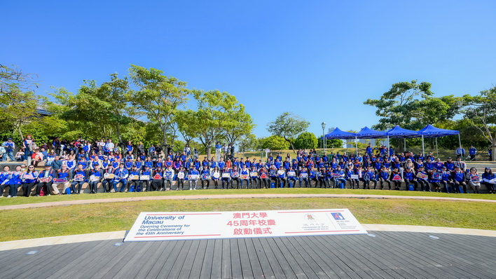 【本報消息】澳門大學於周日舉行45周年校慶啟動儀式,一眾特區政府官員、中央駐澳機構、立法議員、教育界、獎學金捐贈人、合作伙伴,澳大師生、校友等聚首於澳大水劇場,共同為校慶揭開序幕,暢享澳大建校45周年的喜悅。