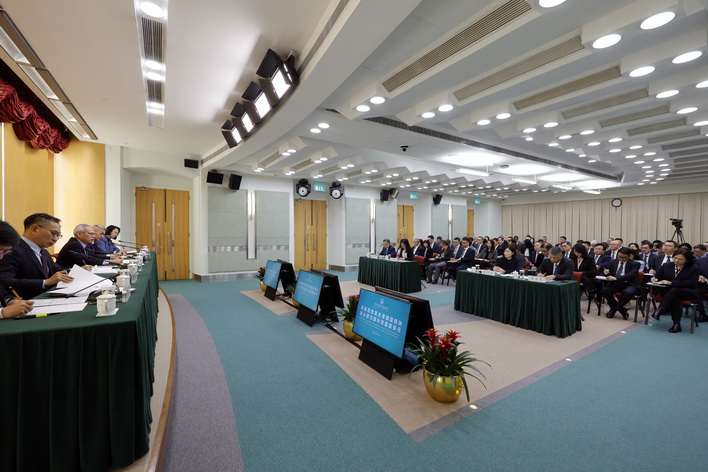 【本報消息】行政長官岑浩輝上周五下午在政府總部主持「貫徹落實習主席講話精神、凝心聚力提升效能促多元」特區政府主要官員和局級領導2025年度工作總結會議,傳達習近平主席對特區政府過去一年工作的評價,並同與會官員總結施政工作成果,查找不足,推動改進,貫徹落實習主席的重要指示及要求,更好部署2026年的施政工作。