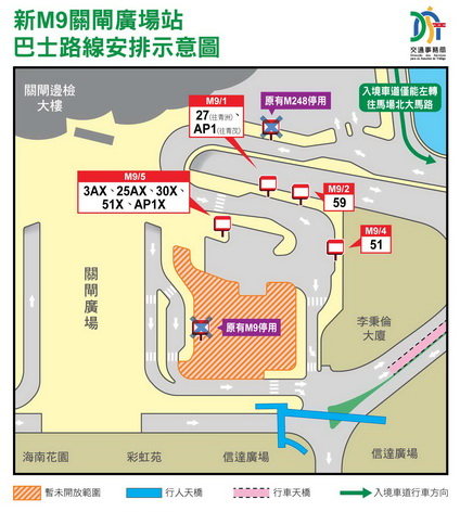 因應連接通道的前期管線遷移工程將於四月開展,有必要先將公共巴士路線移至新建上落客區的巴士站點,以騰出空間進行後續工作。經跨部門協調,並聽取交通諮詢委員會及當區坊會意見,於1月24日起關閘廣場周邊一帶將實施有限度通車,並禁止從關閘邊檢大樓入境的車輛右轉,只能左轉經馬場北大馬路前往澳門各區。而關閘一帶的巴士服務亦會相應調整,以保障巴士服務穩定,便利市民出行。當中除合併關閘廣場站與關閘東側上落客區站外,亦會調整AP1路線總站及行程,以及關閘總站部份路線停靠位置。