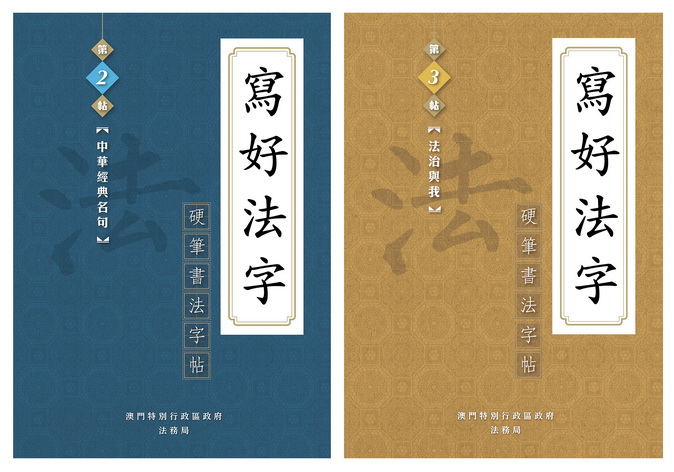 【本報消息】法務局於去年印製了「寫好法字」硬筆書法字帖第一帖「學好基本法」,現推出第二帖和第三帖作為系列延伸,內容分別為100句中華經典名句和國家安全及法律知識,並已向本澳各小學派發。藉此推動學生透過臨摹練習,傳承優秀中華傳統文化,以及從小培養法治精神。