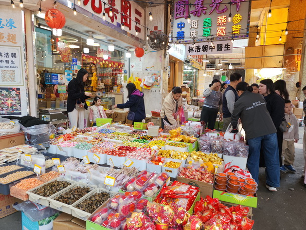 海味雜貨店亦見有居民正在挑選瓜子和糖果等新春賀年食品,有居民指新春期間雖然會出外短途旅遊,但家中始終會擺放瓜子和糖果等賀年糖果盒,以備新春期間親戚上門拜年;也有選擇新春期間留澳的居民到來購買蠔豉、花菇和髮菜等準備在新春期間為家人煮飯,並指新春本澳不少食肆休息或加收三工費用,因此今年新春準備在家自行準備飯餸。