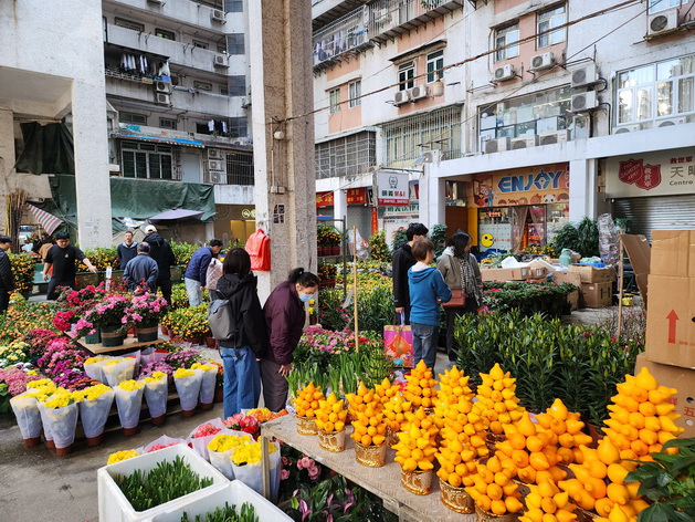 除了內地居民來澳辦年貨外,不少居民亦趁周末假期外出辦年貨,其中售買年花、年桔的商戶人流明顯較多,有商戶指今年來貨價上升一成,但居民購買越趨謹慎,定價只好與去年相若,同時居民居住空間有限,購買較佔用地方的桃花人數減少,而可以放在枱上的蘭花和水仙等較受歡迎,年桔雖然同樣會較佔用地方擺放,但購買的人仍有不少。