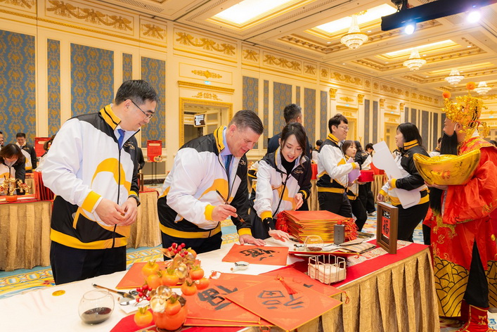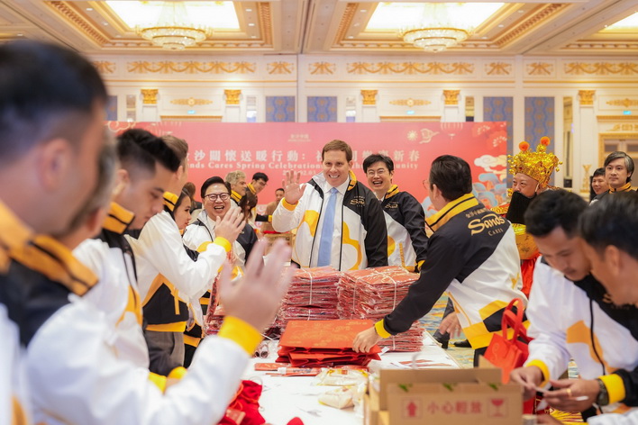 日前拉斯維加斯金沙集團總裁兼首席營運總裁Patrick Dumont與一眾管理層,連同來自金沙中國20個部門的團隊成員及金沙中國關懷大使一共約300人,親身投入新春福袋與揮春製作的行動。大家上下一心,無分彼此,心手相連,合力包裝逾20,000件糧油食品及生活用品,精心準備好2,000個新春福袋,滿載集團對社區關愛與心意。期間,Patrick Dumont及管理層更入鄉隨俗,親身學習書寫迎春納「福」的揮春,感受「福」字背後承載的中國吉祥寓意。