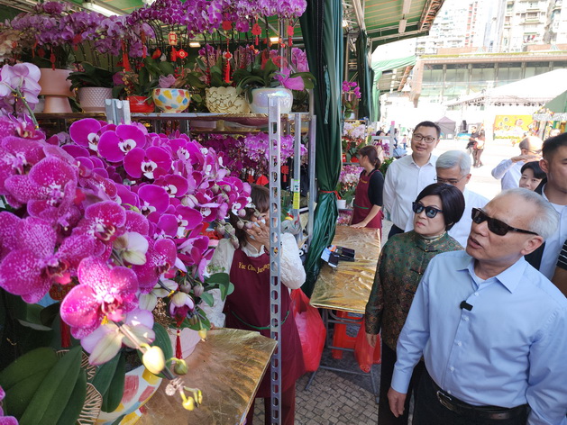 正值農曆除夕,位於塔石廣場的年宵市場最後一日開放,岑浩輝伉儷下午二時半左右到達並參觀多個攤檔,二人一同欣賞年花擺設及特色禮品,岑浩輝向經營者了解營運情況及貨品銷情,祝願他們生意興隆、財源廣進。
