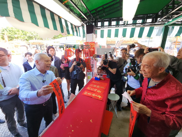 特首伉儷逛年宵獲贈對聯