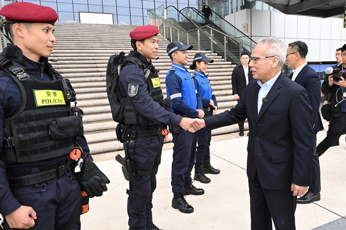 【本報消息】行政長官岑浩輝於大年初一上午先後視察仁伯爵綜合醫院、部份公共服務機構、保安範疇設施及橫琴口岸,瞭解農曆新年期間各項服務、警務運作及通關情況,並向節假日期間堅守崗位的工作人員致以新春祝福,勉勵大家同心協力,確保居民及旅客在澳門平安歡度新春佳節。