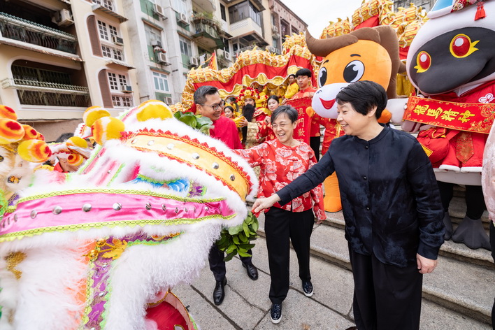 旅遊局局長文綺華、市政署市政管理委員會主席周偉迎、文化局局長梁惠敏、旅遊局副局長程衛東及司徒琳麗以及旅遊發展委員會多位成員等,於大年初一早上在大三巴牌坊向大家拜年,並主持巡演活動的大金龍和醒獅點睛儀式。