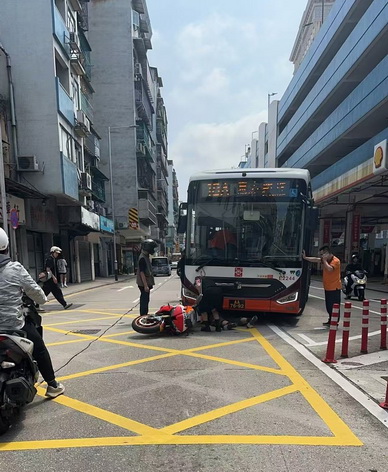 事發於周一下午近二時左右,消防接報沙欄仔斜路與巴素打爾古街交界發生一宗涉及一輛巴士與一輛電單車相撞交通事故,消防到場後發現涉事28歲本澳男電單車司機一度被困在巴士車頭底部位置,幸好沒有沒有被壓被夾,消防人員隨後將其救出,經檢查發現其右前臂及右膝挫傷,清醒情況穩定,並已送山頂醫院救治。至於意外發生起因則有待調查。
