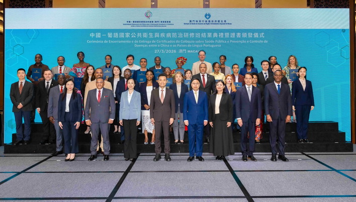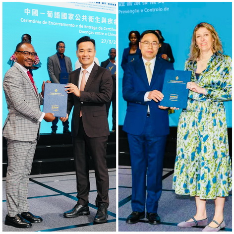 【本報消息】由中國—葡語國家經貿合作論壇(澳門)常設秘書處與政府衛生局聯合主辦的「中國-葡語國家公共衛生和疾病防治研修班」舉行結業禮。本期研修班於3月16日至27日舉辦,共有19名來自中國內地及九個葡語國家的官員和技術人員參加。中葡論壇(澳門)常設秘書處秘書長季先峥、衛生局局長羅奕龍、研修班輪值班長安娜.克莉絲蒂娜出席結業禮並致辭。