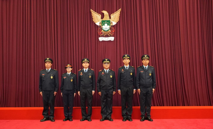 【本報消息】消防局周四在總部暨西灣湖行動站舉行消防總長、副消防總長及一等消防區長晉升儀式。儀式由消防局局長王健主持,副局長張智宏、代副局長李龍傑及各部門主管出席見證。