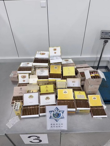 同一期間,海關人員在港珠澳大橋澳門口岸入境旅客檢查區,發現一名澳門居民及一名內地居民神情緊張,經檢查,發現該兩人將合共約27公斤雪茄藏於隨身行李內,試圖將之偷運入境。涉案人士年齡介乎18至70歲,海關已根據《對外貿易法》之規定對其作出起訴,相關違法行為一經證實,可被科處最高10萬元罰款,而被緝獲的貨物會宣告歸特區所有。