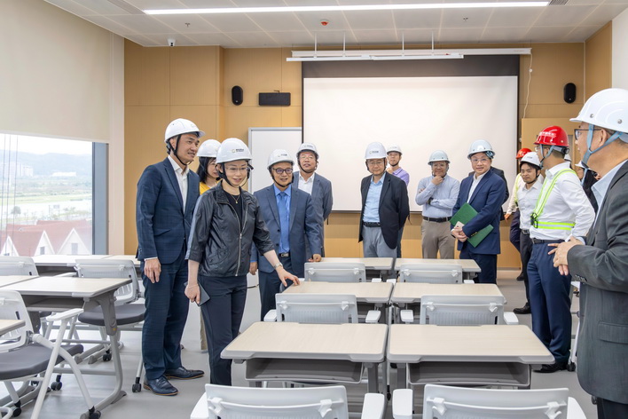 柯嵐一行先抵達位於合作區的大學城第一期項目設施進行考察。有關項目建築面積約6.5萬千平方米,改造裝修工程現正進行,澳門大學、澳門理工大學、澳門旅遊大學預計於今年八至九月期間入駐,開展研究生教學活動。