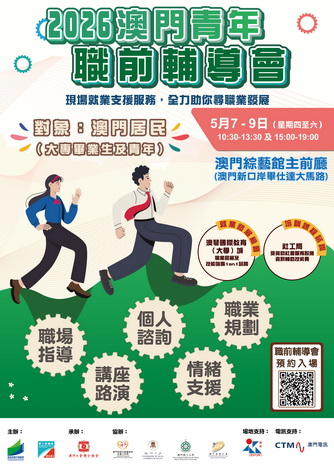 【本報消息】為協助澳門青年順利開展職業生涯及投入就業巿場,由教育及青年發展局和勞工事務局主辦、工聯承辦的2026「澳門青年就業配對會」及「澳門青年職前輔導會」,將於5月7日至9日一連三日於澳門綜藝館舉行。配對會及職輔會兩項活動由即日起於網上預約及報名。