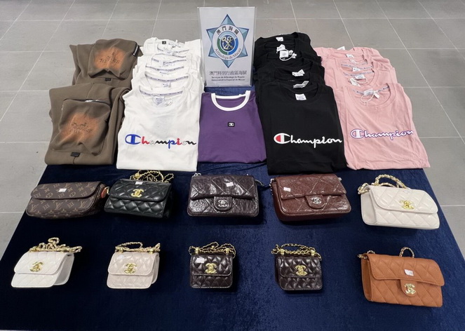 澳門海關於行動中合共查獲四宗涉嫌侵犯知識產權的案件,檢獲的貨物以成衣、檳榔、生活雜貨及袋類為主,貨物總數共623件,若以正貨價格計算約值266萬元。