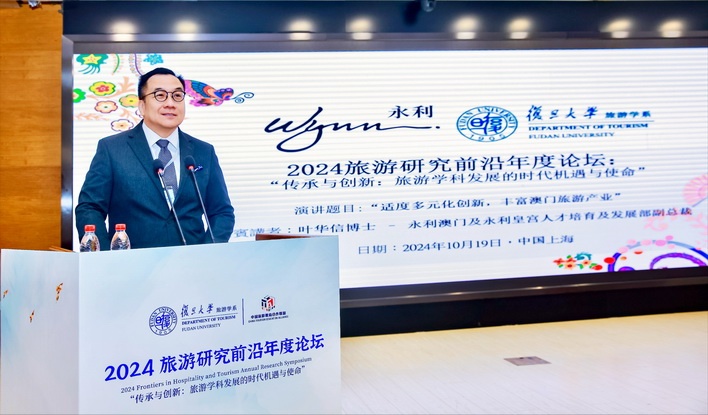 【本報消息】永利澳門及永利皇宮人才培育及發展副總裁葉華信日前應復旦大學旅遊學系邀請,參與在上海復旦大學舉辦的「2024 旅遊研究前沿年度論壇」,並作為唯一旅遊業界代表為活動擔任特邀演講嘉賓,發表題為「適度多元化創新,豐富澳門旅遊產業」的主題演講。旅遊研究前沿年度論壇於 2022 年首辦,至今已舉行至第三屆,本屆以「傳承與創新:旅遊學科發展的時代機遇與使命」為主題,由中國旅遊教育合作聯盟發起,復旦...