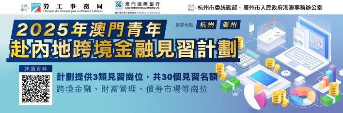 【本報消息】為配合特區政府1+4經濟適度多元發展策略,勞工事務局與澳門國際銀行合作推出「2025年澳門青年赴內地跨境金融見習計劃」。計劃旨在通過在崗實踐,助力澳門青年了解跨境金融的最新發展趨勢,計劃將於7月9日至20日期間接受網上申請。是次見習計劃擬於8月18日開展,為期四周,由澳門國際銀行提供30個見習名額,涵蓋債券市場、財富管理、跨境金融等範疇,為不同專業背景的澳門青年提供多元化見習機會。見...