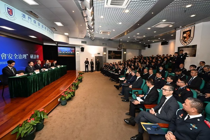 【本報消息】澳門保安部隊高等學校日前舉辦「科技發展與社會安全治理」研討會。研討會的開幕式由保安司司長黃少澤、中聯辦警務聯絡部部長王前進、警察總局局長梁文昌、澳門海關關長何浩瀚主禮。來自上海海關學院、中央司法警官學院、香港警務處、司法警察局和治安警察局的五位專家學者在研討會中分享新知和卓見。研討會除在校內舉辦外,亦在各保安部隊及保安部門設線上直播點,總參與人數共約470人。保安高校校長黃子暉在致辭時...