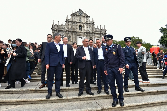 【本報消息】農曆新年期間,澳門各區盛事連連,氣氛熱鬧,為讓市民及旅客在澳平安度歲,保安司轄下各部隊及部門人員於節假日仍緊守崗位確保社會安全和公共秩序,為廣大市民及旅客提供服務。保安司司長黃少澤、警察總局局長梁文昌、澳門海關關長何浩瀚以及一眾保安範疇領導及主管人員,則大年初三親身往前線工作單位視察,同時向執勤中的同事表達慰問。保安司司長一行首先到大三巴牌坊及新馬路一帶,視察現場人流情況及分流措施,檢...