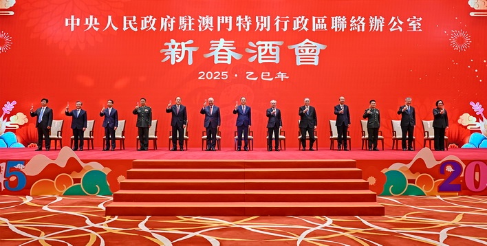 【本報消息】行政長官岑浩輝周四出席中聯辦2025年新春酒會致辭時指出,今年是第六屆政府的開局之年,本屆政府將在歷屆政府所取得的成績和經驗的基礎上,秉持「奮發同行、持正革新」的施政理念,講團結、重協商,銳意改革、擔當作為,以更大力度推動經濟適度多元發展,加強統籌協調,大膽改革創新,並力爭橫琴粵澳深度合作區建設取得新的實質性進展。 中聯辦舉行2025年新...