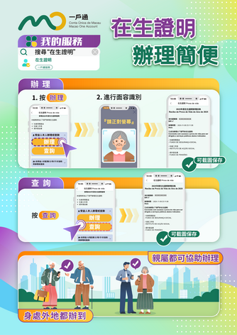 【本報消息】為方便辦理2025年度在生證明及繳納行車稅,特區政府鼓勵市民透過一戶通辦理有關服務,免除親臨櫃枱及排隊輪候。自2025年1月1日起,市民可透過一戶通手機應用程式,一次過辦理社會保障基金、社會工作局及退休基金會的2025年度在生證明,全程無需親臨櫃檯。為便利身處澳門以外地區的澳門居民,一戶通同時支援外地手機號碼接收驗證碼,居民線上開戶後即可辦理在生證明,免去異地奔波或郵寄文件的不便。辦...