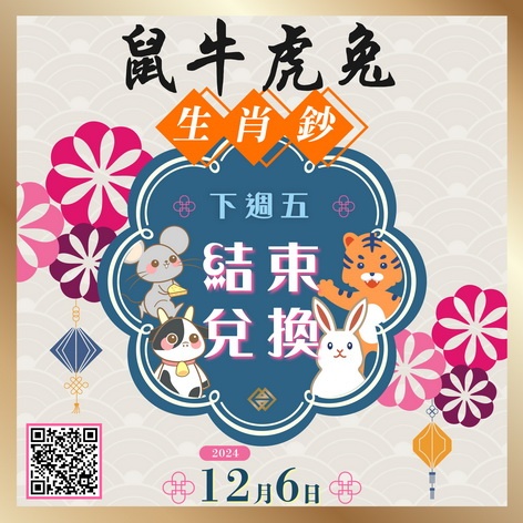 【本報消息】 金融管理局表示,按照既定安排,早年已發行的鼠年、牛年、虎年及兔年生肖鈔的兌換期將於2024年12月6日結束。該局呼籲已完成網上登記但尚未辦理兌換的人士,應於餘下的兌換期內前往所選定的銀行網點進行兌換。