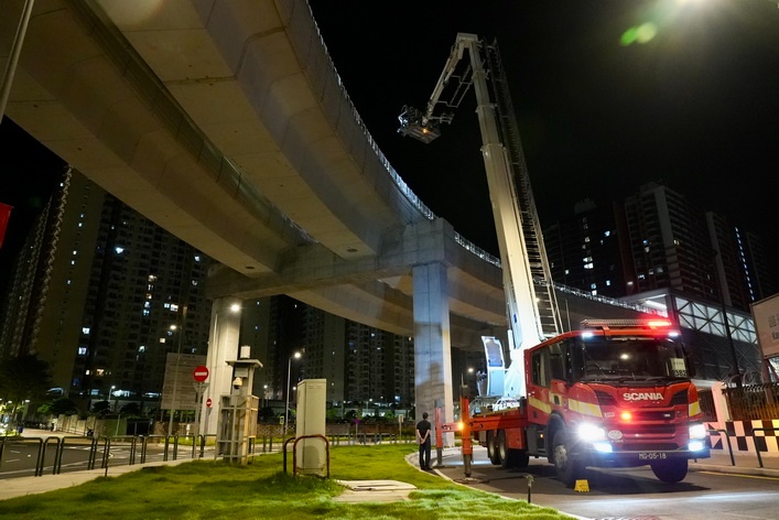 【本報消息】為加強與澳門輕軌公司在發生緊急事故時的應變措施及溝通協調機制,消防局於10月8日凌晨與輕軌公司在輕軌列車石排灣線舉行聯合消防演習。演習模擬一列車從協和醫院站及其轉乘月台開往石排灣站途中,第一卡車廂電器櫃發生短路冒煙,並在即將到站前約100米突然失去動力,有乘客感到不適。車長及輕軌工作人員隨即按照內部應急計劃採取安全措施及安排緊急疏散,同時致電消防局求助。消防局接報後,立即派遣六架緊急救...