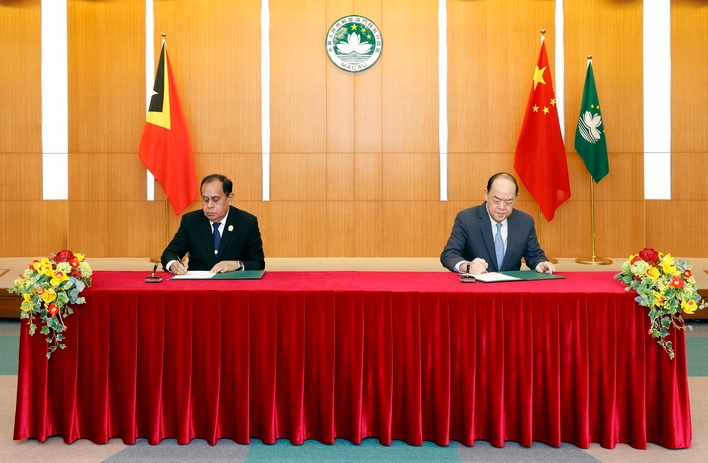 【本報消息】行政長官賀一誠本月26日與東帝汶國家行政部長托馬斯.卡布拉爾(Tomás do Rosário Cabral),代表雙方簽署《中華人民共和國澳門特別行政區與東帝汶民主共和國帝力市締結友好城市諒解備忘錄 》。行政長官表示,東帝汶與澳門同是「海上絲綢之路」的重要節點,期望雙方共同把握「一帶一路」的發展機遇,深化互利合作,攜手開創更美好未來。簽署儀式在政府總部舉行,外交部駐澳特派員劉顯法、行...