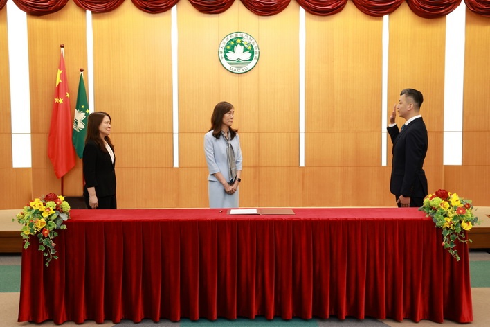 【本報消息】在社會文化司歐陽瑜司長監誓、社會文化司司長辦公室何鈺珊主任見證下,體育局張子軒局長已於本月20日在政府總部多功能廳宣誓就職。根據第87/2024號社會文化司司長批示,以定期委任方式委任張子軒為體育局局長,任期由2024年9月20日起,為期一年。張子軒在致辭時感謝特區政府、行政長官和社會文化司司長的信任和支持,對有機會在新的工作崗位服務市民感到榮幸,並對歷任體育局領導和全體同事表示感謝,...