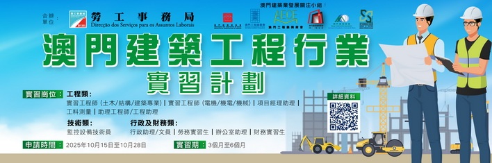 【本報消息】為培育澳門青年投身建築與工程行業,以促進本地人才梯隊的建設和可持續發展,勞工事務局聯同由澳門建築師協會、澳門建築置業商會、澳門工程師學會、澳門工程顧問商會、澳門建造商會及澳門建築機械工程商會組成的「澳門建築業發展關注小組」合作,推出「澳門建築工程行業實習計劃」。該計劃提供土木、電機、機械實習工程師、項目經理助理、工料測量、監控設備技術員等共38個實習崗位,涵蓋工程、技術、行政及財務等多...