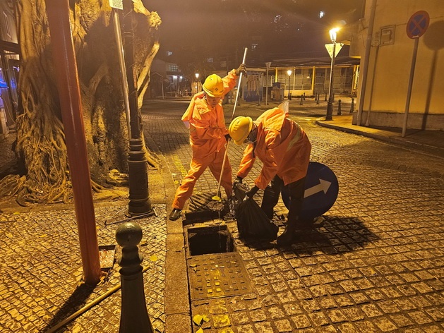 【本報消息】八號風球期間,市政署在安全情況下,繼續派員巡查本澳各區渠網,並清理渠口堆積的垃圾及路邊雜物,以免堵塞影響排水。同時,密切監察各雨水泵站及箱涵渠的運作情況,保障渠道排澇能力。