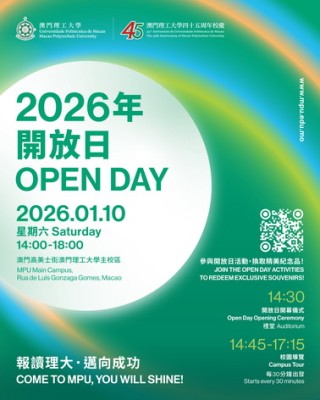 【本報消息】為喜迎澳門理工大學45周年校慶,理大2026年開放日將於1月10日在高美士街理大主校區舉行。本年度開放日以「科創與『理』成就卓越」為題,透過學位課程講解會、專題展覽、工作坊、體驗活動、升學諮詢、校園導覽,以及線上線下訪談節目「與『理』Chit-Chat」等活動精彩紛呈,向社會各界展示理大的辦學特色、課程資訊、教研成果、社會服務及國際合作成果,歡迎中學生、家長,以及社會各界蒞臨澳理大參與...