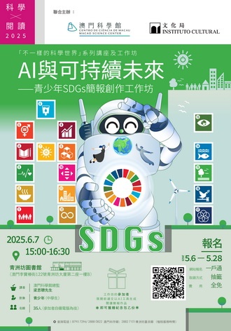 【本報消息】文化局與澳門科學館多年來攜手舉辦「科學x閱讀」系列活動,今年率先推出全新主題「AI 與可持續未來—青少年SDGs簡報創作工作坊」,由即日起至5月28日期間於一戶通接受報名,活動費用全免,歡迎本澳中學生踴躍參加。「科學x閱讀」系列活動致力於讓市民在公共圖書館中體驗科學與閱讀的互動融合,從而提升科普素養並培養閱讀興趣。2025年系列活動針對不同群體推出多元化內容,例如「周五科普繪本遊樂園」...