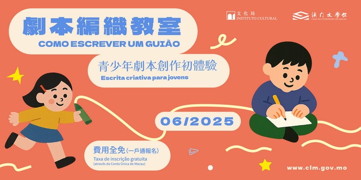 【本報消息】為鼓勵青少年寫作,文化局轄下澳門文學館將於六月舉辦為期四堂的「劇本編織教室─青少年劇本創作初體驗」寫作課堂,結合劇場編劇理論與實踐,帶領參加者深入探索戲劇創作的世界,激發劇本創作才華。活動費用全免。「劇本編織教室─青少年劇本創作初體驗」分別於6月7日、15日、21日及28日下午二時半至五時在澳門文學館舉行,對象為13至18歲的青少年。課堂內容涵蓋現代與當代劇本分析,讓參加者理解各種風格...