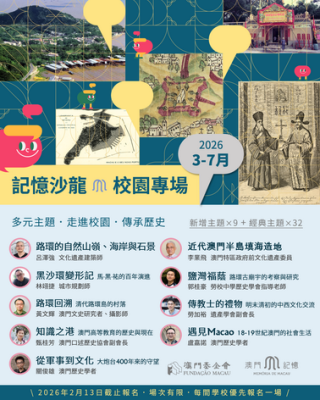【本報消息】由澳門基金會主辦的記憶沙龍校園專場(中學場),致力向本澳中學生傳播澳門在地歷史文化,探索小城在地歷史及社會脈絡,推廣澳門形象。2026年的校園專場講座將於三月至七月期間舉辦,現正開始接受報名,歡迎本澳學校組織參加。記憶沙龍持續引入本土不同領域知識主題,其中校園專場廣受各校師生關注及歡迎,2025年入校舉辦39場記憶沙龍講座,超過4,300人次參與。2026年校園專場講座將繼續圍繞澳門歷...