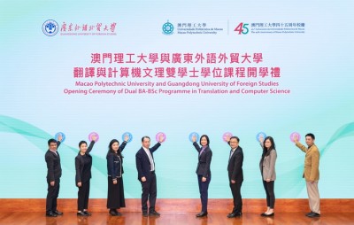 【本報消息】在《粵港澳大灣區發展規劃綱要》發佈七周年之際,澳門理工大學與廣東外語外貿大學合辦的「翻譯及計算機文理雙學士學位課程開學禮」在理大舉行,歡迎廣外—理大合作辦學項目首屆學生開啟澳門段學習新旅程。理大代校長李雁蓮、廣外副校長申明浩、兩校項目負責人,以及課程學生一百多人出席典禮,共同見證項目踏上新台階。開學禮上,李雁蓮致辭時感謝特區政府和國家教育部的支持。適逢今年是理大45周年校慶喜慶之年,兩...