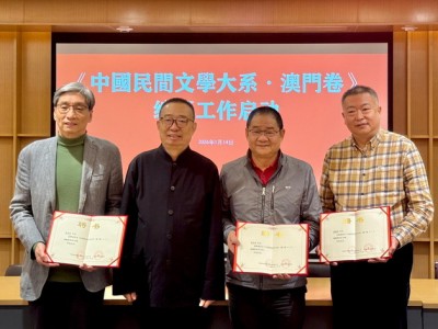 【本報消息】由澳門基金會主辦的《中國民間文學大系.澳門卷(一)》舉行編纂工作啟動會議,中國文學藝術界聯合會(中國文聯)副主席、中國民間文藝家協會(中國民協)主席、中國民間文學大系出版工程領導小組副組長潘魯生,澳門基金會行政委員會主席、《大系.澳門卷(一)》編纂委員會主任吳志良,編纂主編、澳門科技大學人文藝術學院院長張志慶教授,編纂主編、澳門大學人文學院助理教授邵朝陽,團隊成員鄧景濱、胡國年、鄧駿...