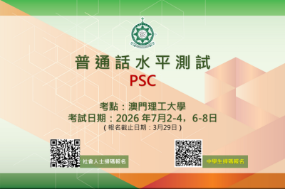 【本報消息】由澳門理工大學與國家語言文字工作委員會(國家語委)合作舉辦,2026年7月考期的普通話水平測試(PSC)現正接受報名。本次測試日期為7月2至4日、6至8日,歡迎澳門中學生及社會各界人士報名參加。 作為澳門地區唯一的普通話水平測試機構,理大自1998年起與國家語委合作展開普通話水平測試工作,28年來持續為澳門社會提供權威、專業的普通話水平測試服務,致力滿足澳門地區普通話教學、培訓及測試的...