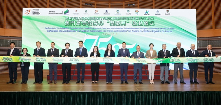 【本報消息】為慶祝中華人民共和國成立75周年和澳門特別行政區成立25周年,加強澳門高等教育界雙慶活動的教育影響力及師生的家國情懷,教育及青年發展局聯同本澳10所高等院校齊賀雙慶,於10月至12月期間將舉辦超過60項的雙慶活動。高教界「雙慶月」啟動儀式10月8日在澳門科學館會議中心會議廳舉行,由社會文化司司長歐陽瑜、社會文化司司長辦公室主任何鈺珊、中聯辦教育與青年工作部部長李雪飛、教育及青年發展局局...