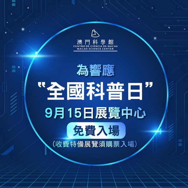 【本報消息】為響應中國科學技術協會於今年九月開展以「提升全民科學素質,協力建設科技強國」為題的全國科普日,澳門科學館將舉辦連串活動,包括「點亮星辰」天文科普活動、邀請專家講解文物鑑識及科學掃描技術、舉辦親子工作坊介紹3D列印技術應用知識,以及與古建築相關的科學故事等。9月15日的全國科普日展覽中心將免費入場(特備展覽除外),歡迎公衆踴躍參與,提升科學素質。天文館將於9月17日中秋節晚上八時半在館外...