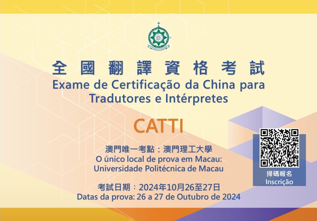 【本報消息】2024年全國翻譯專業資格考試(CATTI考試)將於10月26至27日在澳門理工大學舉行。作為澳門唯一考點,理大語言及翻譯學院將舉辦英語及葡萄牙語翻譯水平測試,考試於即日起至9月20日接受線上報名,歡迎各界人士踴躍參與。全國翻譯專業資格考試(CATTI)是一項在中國實行的、統一的、面向全社會的翻譯專業資格(水平)認證,是對參試人員在口譯或筆譯上雙語互譯能力的評鑒。它是唯一納入國家職業資...