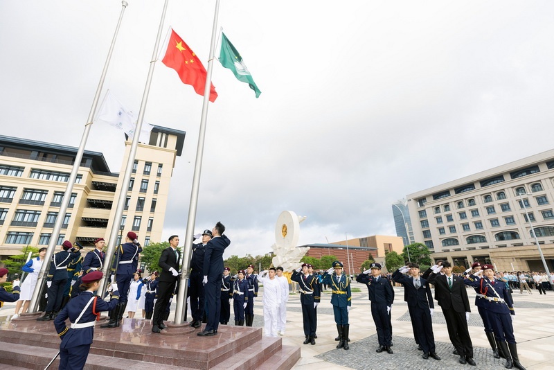 【本報消息】為慶祝中華人民共和國成立75周年暨澳門特別行政區成立25周年,澳門大學聯合澳門理工大學、澳門旅遊大學、澳門保安部隊高等學校、澳門科技大學、澳門城市大學及澳門鏡湖護理學院17日在澳大蓮花廣場舉行「澳門高校聯合升旗共賀雙慶」活動。儀式在早上八時開始,高校聯合國旗儀仗隊的升旗方陣唱著歌曲《祖國不會忘記》齊步行進出場。伴隨著國歌響起,旗手振臂一揮,三面旗幟迎著朝陽冉冉升起。在場所有觀禮人員莊嚴...