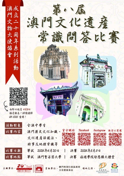 【本報消息】由澳門文物大使協會主辦,文化發展基金資助,澳門旅遊大學及澳門聖若瑟大學場地支持的「第八屆澳門文化遺產常識問答比賽」將於周六上午舉行筆試,屆時將有分別來自26間中學的47支隊伍,超過百名學生參加,從筆試脫穎而出的24支隊伍,將參加五月中旬舉行的決賽。文物大使協會副理事長李澤賢表示,澳門文化遺產常識問答比賽至今已連續八年舉辦,成為本澳推動文化遺產教育的重點活動之一,通過...