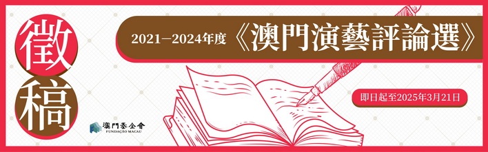 【本報消息】為總結過去四年的演藝評論創作成果及過去兩年的文學創作成果,並保存澳門演藝評論和文學資料,澳門基金會再度出版《澳門演藝評論選》和《澳門文學作品選》。其中《澳門演藝評論選》公開徵集2021至2024年間發表的澳門演藝評論文章,評論選分「澳門作者卷」及「外地作者卷」兩部分。前者選編範圍為2021年1月1日至2024年12月31日期間,澳門作者(持永久或非永久性身份證的澳門居民)發表於澳門或外...