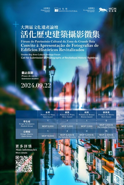 【本報消息】由文化局主辦、美高梅合辦的「大灣區文化遺產論壇—活化歷史建築攝影徵集」活動,以「澳門活化歷史建築」為題,向公眾徵集黑白或彩色單張攝影作品(包括航拍及全景攝影),現為廣泛提升社會參與,作品收件期將延長至9月22日,歡迎公眾踴躍投稿,一同留下與歷史建築互動的美好時光。澳門擁有眾多活化歷史建築,相關活化工作由政府、私人或社區主導,對原來已缺乏使用和失去活力的歷史建築,通過修復和注入新的現代使...
