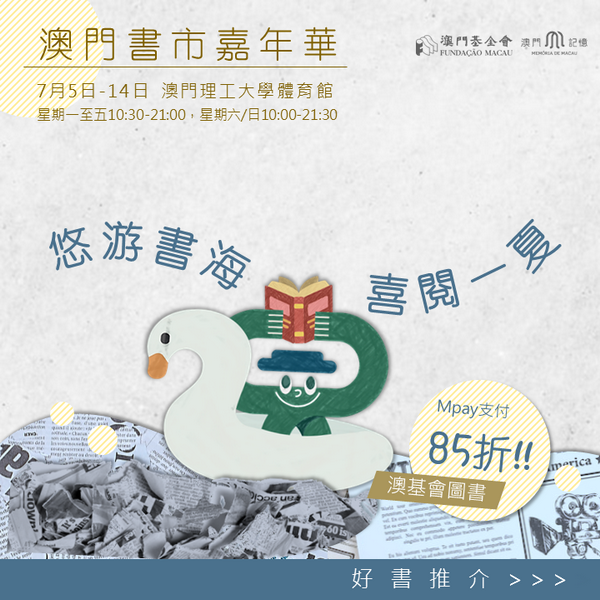 【本報消息】「第27屆澳門書市嘉年華」由7月5日至14日期間於澳門理工大學體育館舉行,澳門基金會展出數百種圖書,並推出MPAY澳門錢包支付八五折優惠,以饗讀者。澳基會的「澳門記憶」文史網將於書展期間舉辦「記憶沙龍」特別場,邀請前澳門博物館前館長陳迎憲主講「海洋的澳門:1445.琉球人抵達蠔鏡」。澳門書市嘉年華是暑假期間一大盛事,本屆近50個出版及發行機構、教育機構參展。澳基會圖書位於館內B2展...