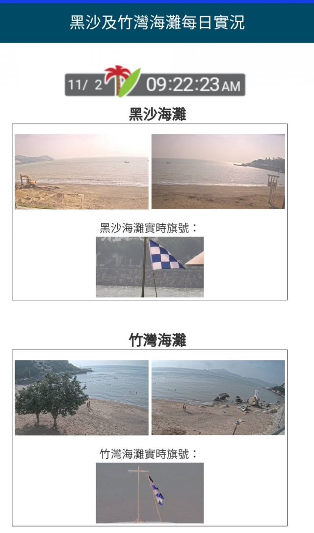 海事局網頁提供海灘實時影像及旗號資訊本年泳季如往常一樣於10月31日結束。泳季結束後,海事及水務局在黑沙及竹灣兩個海灘的救生及救護工作暫告一段落,原設於海灘泳區的邊界浮泡亦會撤走。局方呼籲游泳人士及市民,在海灘沒有救生員當值的情況下,游泳、嬉水或進行水上活動時需要加倍小心,注意安全。本年泳季局方分別於黑沙及竹灣海灘派駐救生員及救護員當值,期間共提供了235次救護服務,較以往平均每日約一次的情況為多...