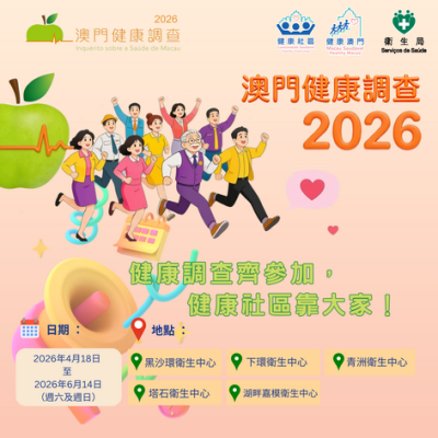 【本報消息】衛生局現已開展「澳門健康調查2026」,並於3月30日至4月12日期間,隨機抽取3,000名18歲及以上澳門常住居民,進行電話邀請及預約;現場調查則於4月18日至6月14日期間的星期六及日進行(5月2至10日除外)。衛生局呼籲居民積極參與,攜手實現「幸福澳門」施政願景。為確保調查規範及高效,衛生局與澳門鏡湖護理學院師生共同組成專業調查隊伍,其中學院派出120名師生參與,主要負責健康問卷...